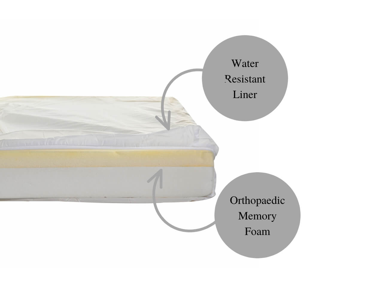While the main cover itself is waterproof and we have added extra protection with waterproof liner to the mattress. so it make crate mat double waterproof but also keep it clear of mold or dust mites.