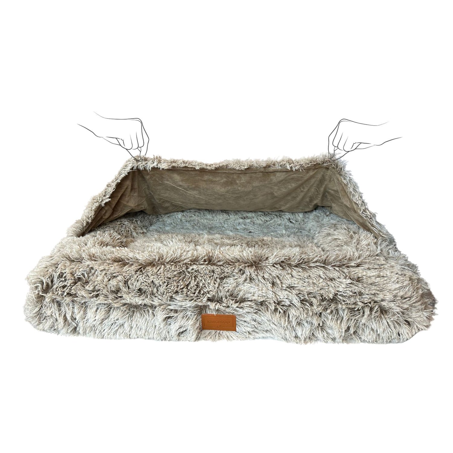 Top of the cover has ¾ of the hooded cover fixed to the edges which looks exactly like a Kangaroo pouch. Its cozy cave-style pocket, ideal for nestling and snuggling pets, especially those with anxiety and who likes to burrow. It creates a deep and calming space, allowing your pet to curled-up position (just like Joey), providing a sense of support and security they'll love.