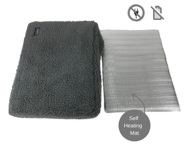 Built-in high-quality heat-reflecting layer(aka Self Heating Mat), so the pet's own body heat is reflected to the body and isolated from the cold surface. It is completely self-heating without the need for batteries or cables.